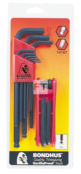 - Zestaw BO10999 - imbusy długie z końcówką kulistą metryczne [9 części], rozmiary: 1,5 / 2 / 2,5 / 3 / 4 / 5 / 6 / 8 / 10