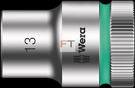 Klucz nasadowy firmy Wera (ISO 2725-część 3) do stosowania ręcznego oraz maszynowego. System oznaczenia kolorystycznego kluczy według rozmiaru "Take it easy" ułatwiający i przyspieszający odnajdywanie właściwego narzędzia. Poręczny kształt umożliwiający chwytanie nawet zabrudzonymi smarem rękami. Z rowkiem ustalacza kulkowego. Do śrub i nakrętek z łbem sześciokątnym. Ze stali chromowo-wanadowej, chromowany matowo.