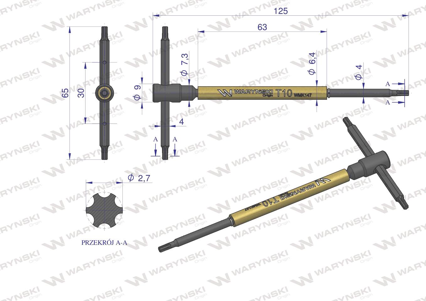 Waryński, klucz T ze spinnerem TORX T55, WMK156