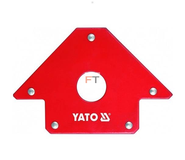 Yato wykonany z blachy stalowej oraz silnych magnesów ferrytowych. Umożliwia precyzyjne łączenie materiałów pod następującymi kątami: 45°, 90° i 135°. Udźwig magnesu ok. 22,5 kg. Posiada otwór służący do montażu elementów walcowych, np. rurek i prętów, o średnicy do 28 mm. Powierzchnia obudowy magnesu lakierowana proszkowo. Przeznaczony do czasowego łączenia metalowych elementów podczas spawania, nawiercania, lakierowania, czynności wymagających używania obu rąk. Stosowanie kątownika magnetycznego pozwala na swobodne operowanie obiema rękami i wstępne montowanie łączonych, metalowych elementów bez pomocy dodatkowej osoby.